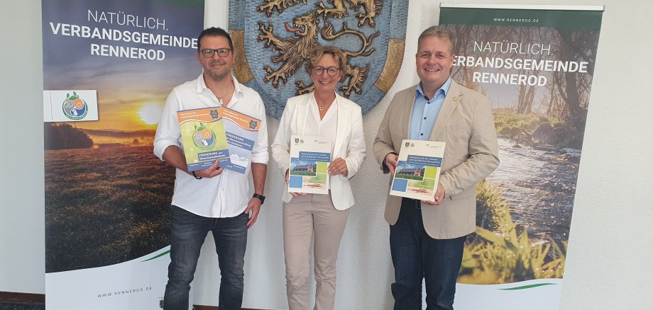 Frau Sabine Schneider (Dipl. Geogr., Regionalreferentin Westerwald) vom Regionalbüro Westerwald der Energieagentur Rheinland-Pfalz GmbH mit Sitz in Altenkirchen ist zur Präsentation der gemeinsamen Broschüre der Verbandsgemeinde Rennerod und der Energieagentur Rheinland-Pfalz extra persönlich angereist. „Ich freue mich sehr, dass die Verbandgemeinde Rennerod eines der zahlreichen kostenlosen Angebote der Energieagentur Rheinland-Pfalz angenommen hat. Mit der neuen, auf Rennerod individualisierten Broschüre „Klimaschutz bei der Gebäudeplanung bedeutet Lebensqualität“ können nun Bauherren und Immobilienkäufer über die Vorteile von Klimaschutz- und Klimaanpassungsmaßnahmen auf dem eigenen Grundstück informiert werden. Der Vorteil liegt dabei auf der Hand: durch eine klimagerechte Gestaltung des Gebäudes kann nicht nur aktiv Umweltschutz betrieben werden, sondern gleichzeitig auch noch der Geldbeutel geschont werden. Lassen Sie uns gemeinsam eine lebenswerte Zukunft gestalten, in der Klimaschutz und Lebensqualität Hand in Hand gehen. Denn eins ist klar: Wir bauen heute die Gebäude der nächsten 50 Jahre.“