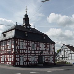 Um 1300 wird Rehe dann erstmals urkundlich erwähnt (iuxta ripam, que dicitur Rie). Schon um 1440 hatte der Ort eine Kapelle, die 1570 abgebrannt ist (GENSICKE, 1990, S252). 1738 wird mit dem Bau eines vereinten Bet- und Schulhauses begonnen, welches am 18.06.1741 eingeweiht und in dem bis 1924 auch unterrichtet wurde. Der prachtvolle Fachwerkbau prägt noch heute das Ortsbild und fehlt in keinem Bildband zum Hohen Westerwald.