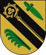 Das Wappen der Ortsgemeinde Seck zeigt schwarzen Schrägbalken, der mit einem goldenen Bischofsstab belegt ist. Oben ist ein grüner Dolch und unten ist ein grüner Palmenzweig auf goldenem Grund zu sehen.